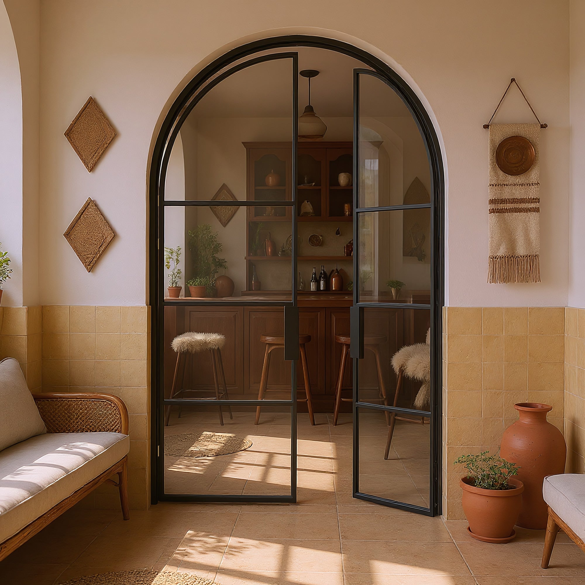 Our contemporary arch retro vintage style interior aluminum glass french door feature a sleek and sophisticated design that will instantly elevate the look of any room. The aluminum frame is built to last, providing strength and durability for years to come. The glass panels are crafted with high-quality materials, delivering a clear and unobstructed view while also ensuring privacy and security.