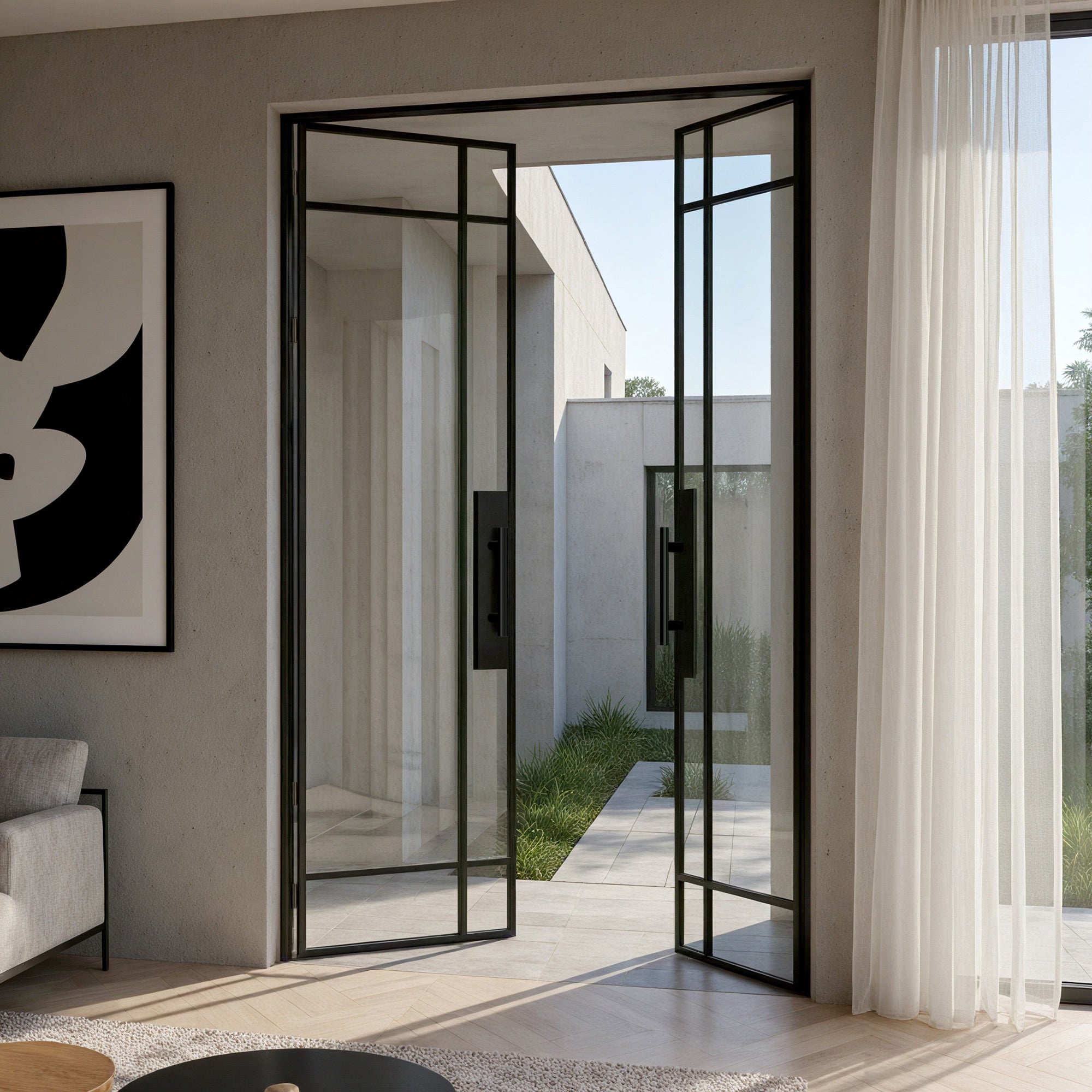 Our contemporary aluminum glass french door feature a sleek and sophisticated design that will instantly elevate the look of any room. The aluminum frame is built to last, providing strength and durability for years to come. The glass panels are crafted with high-quality materials, delivering a clear and unobstructed view while also ensuring privacy and security.