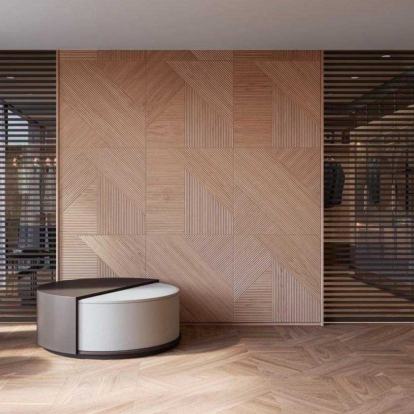 This textured solid wood panel combines both aesthetic appeal and functionality. Made from high-quality wood, its textured surface significantly enhances the overall quality of your space. Expertly carved and polished, it features a unique textured effect. With our diverse range of solid wood staining treatments, this distinctive decorative element elevates your interior design to new heights, serving as a striking visual focal point.